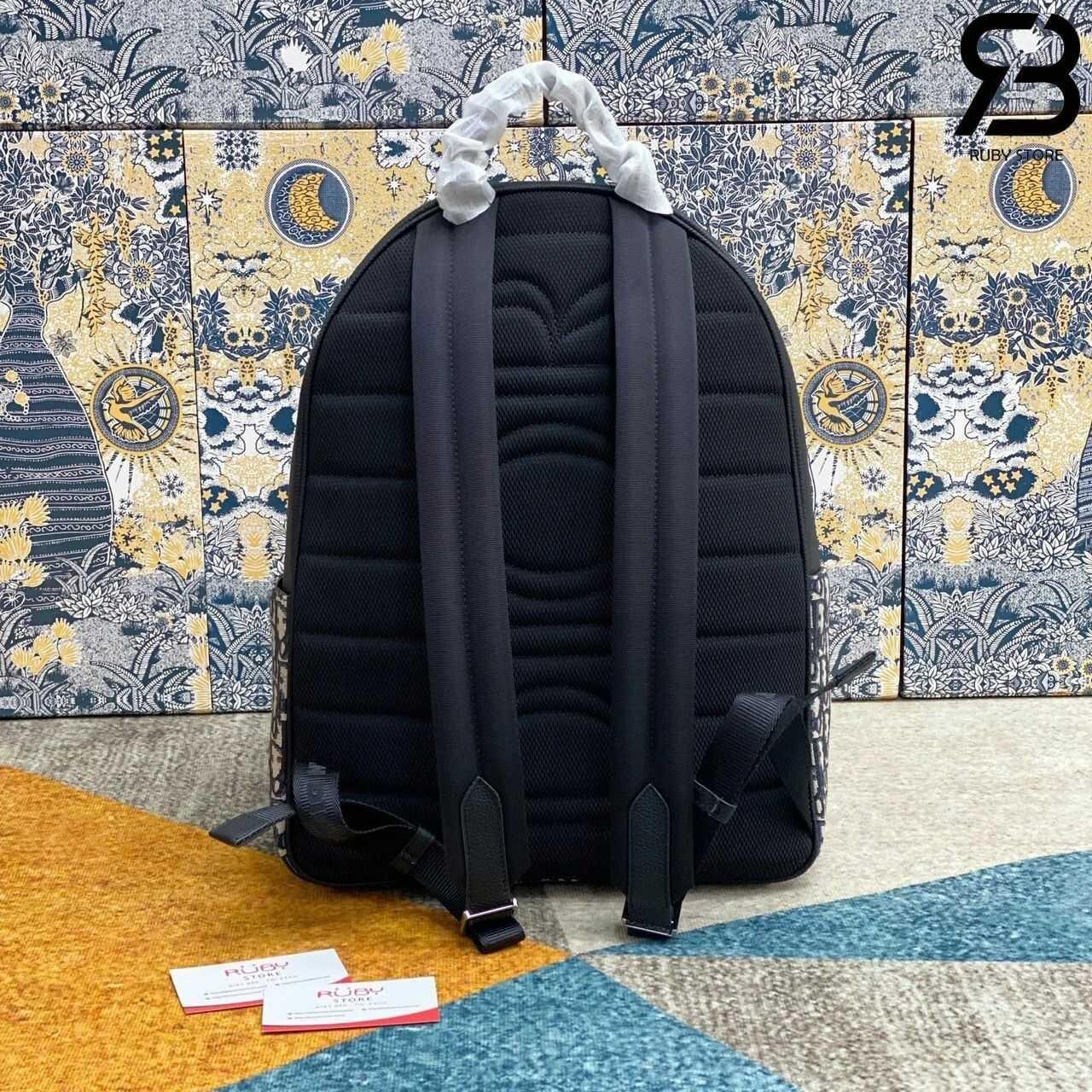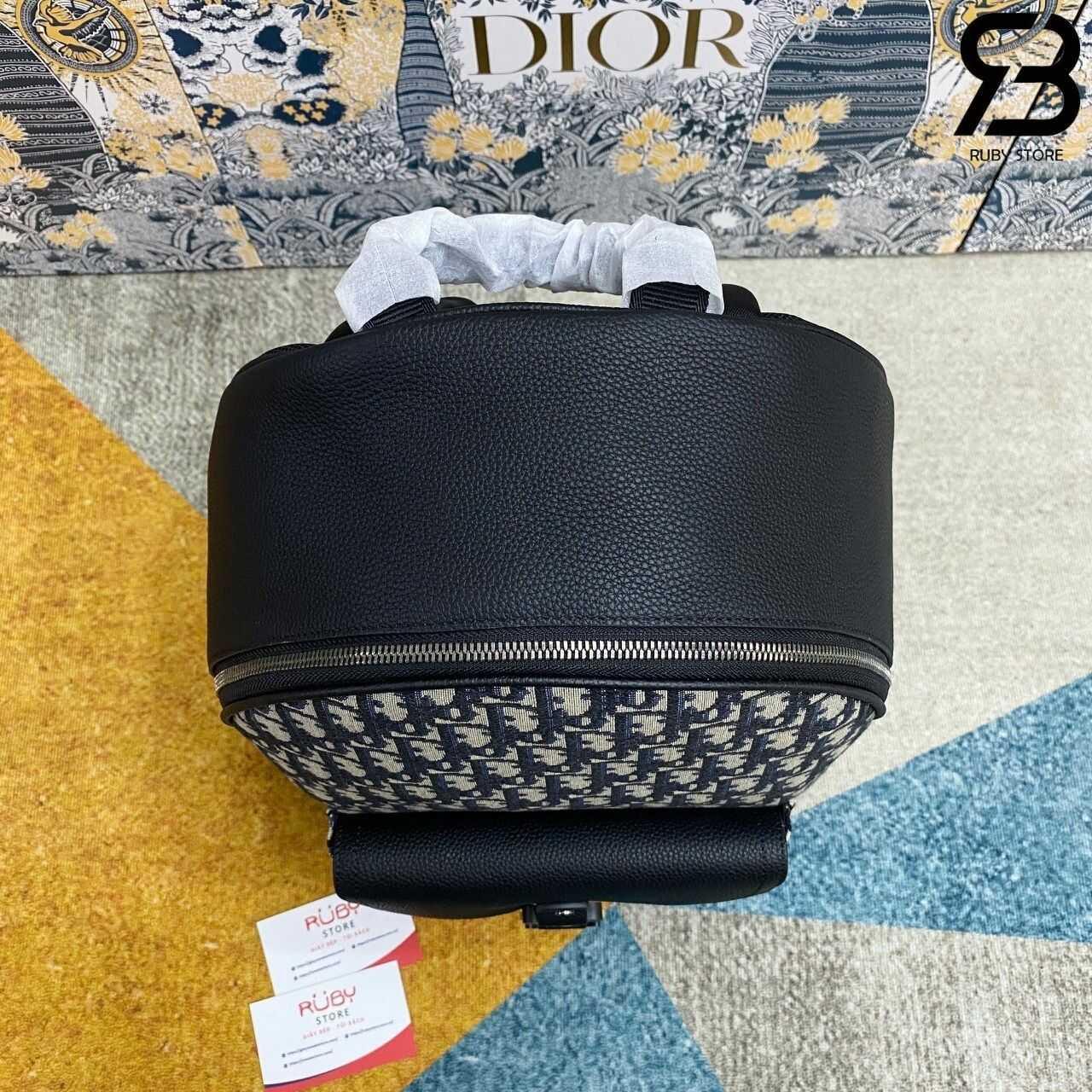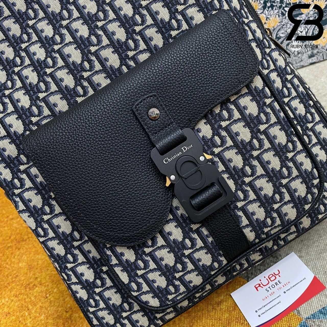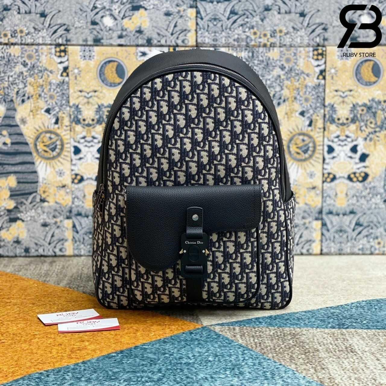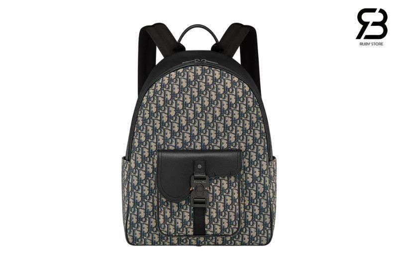 Thông tin mẫu ba lô Dior Saddle Zip Backpack Black Beige Oblique Jacquard