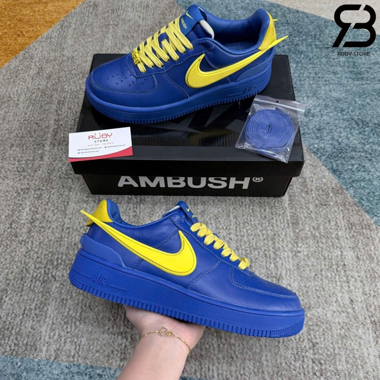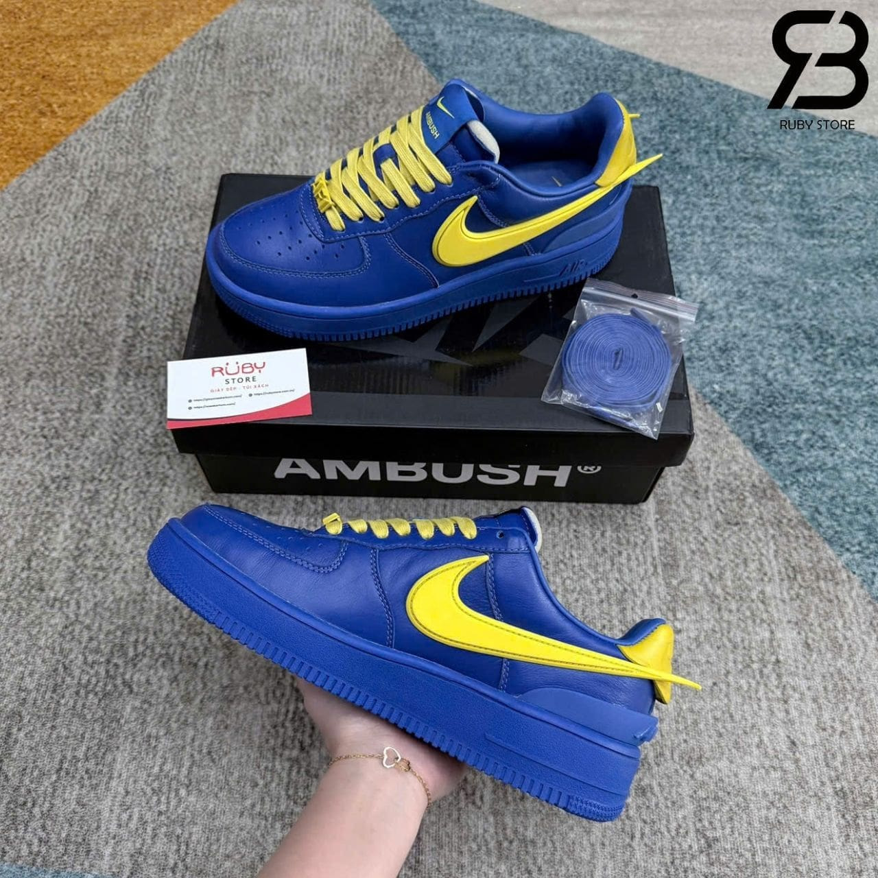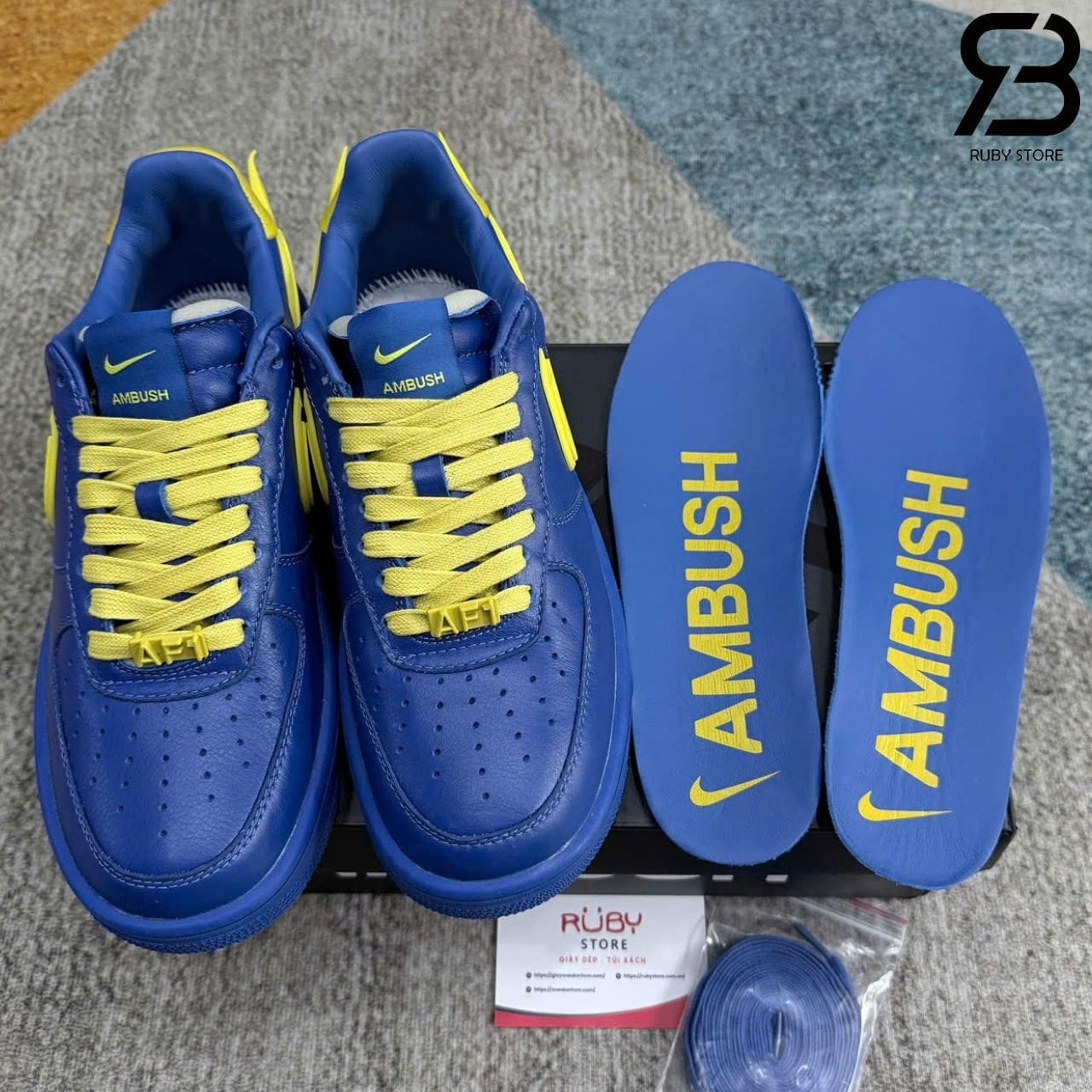 Hình ảnh thực tế mẫu AF1 Ambush màu xanh dương vàng Best Quality: