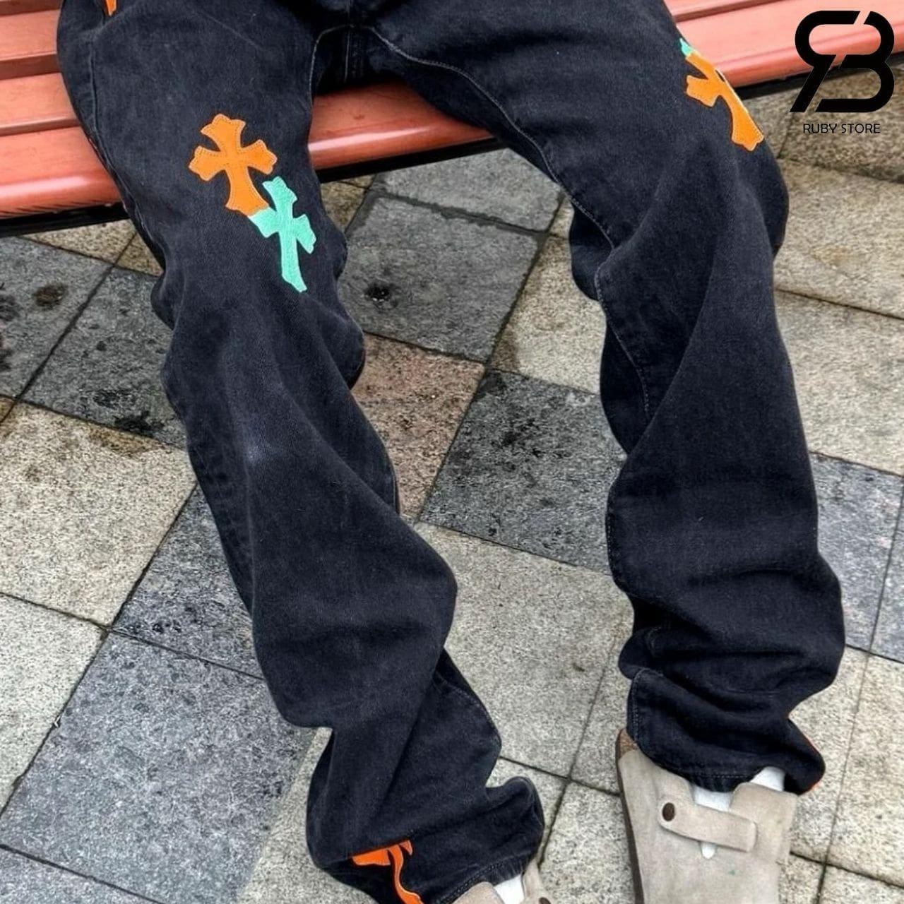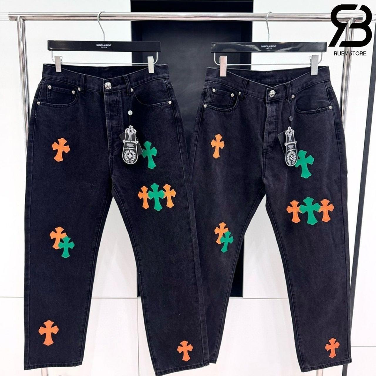 Thông tin mẫu quần Jean Chrome Hearts Black Orange Green Jeans