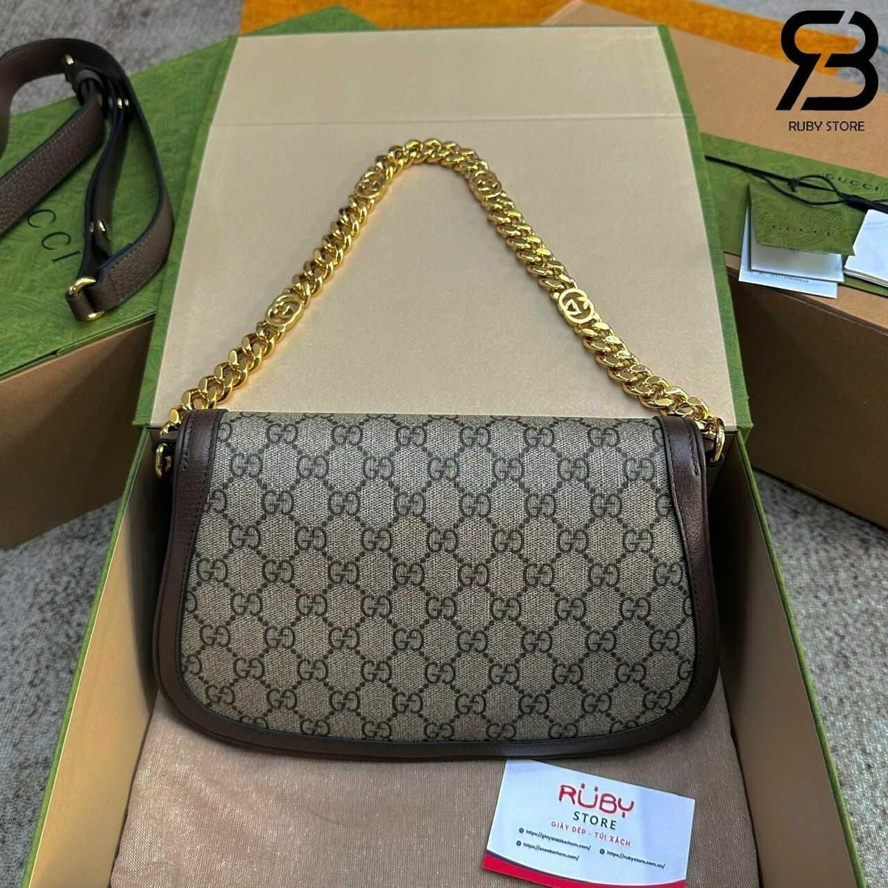 Hình ảnh thực tế mẫu túi GG Blondie Supreme Canvas màu be nâu